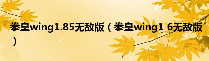 大家好,雨雨来为大家解答以上问题,拳皇wing1.85无敌版,拳皇wing1 6无敌版很多人还不知道,现在让我们一起来看看吧!