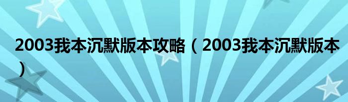 2003我本沉默版本攻略(2003我本沉默版本)