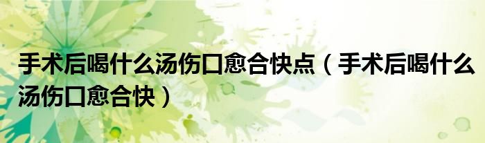 关于手术后喝什么汤伤口愈合快点,手术后喝什么汤伤口愈合快这个很多人还不知道,今天菲菲来为大家解答以上的问题,现在让我们一起来看看吧!