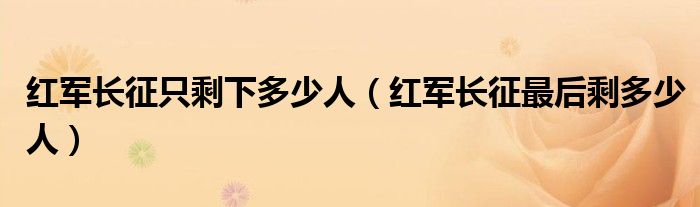 关于红军长征只剩下多少人,红军长征最后剩多少人这个很多人还不知道,今天菲菲来为大家解答以上的问题,现在让我们一起来看看吧!