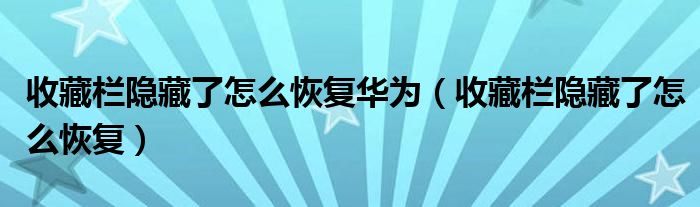 关于收藏栏隐藏了怎么恢复华为,收藏栏隐藏了怎么恢复这个很多人还不知道,今天菲菲来为大家解答以上的问题,现在让我们一起来看看吧!