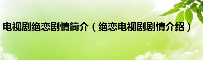 大家好,小晋来为大家解答以下问题,关于电视剧绝恋剧情简介,绝恋电视剧剧情介绍很多人还不知道,今天让我们一起来看看吧!