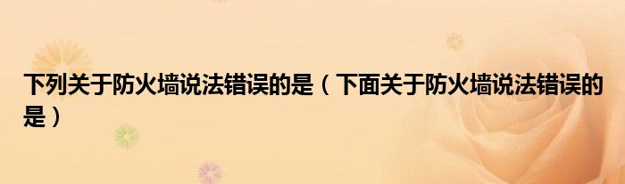 关于下列关于防火墙说法错误的是,下面关于防火墙说法错误的是这个很多人还不知道,今天菲菲来为大家解答以上的问题,现在让我们一起来看看吧!