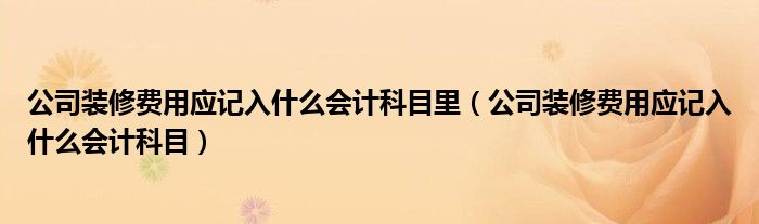 关于公司装修费用应记入什么会计科目里,公司装修费用应记入什么会计科目这个很多人还不知道,今天菲菲来为大家解答以上的问题,现在让我们一起来看看吧!