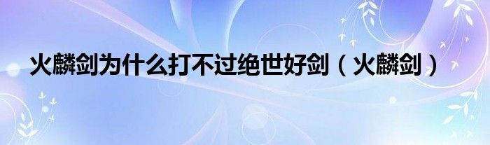 关于火麟剑为什么打不过绝世好剑,火麟剑这个很多人还不知道,今天菲菲来为大家解答以上的问题,现在让我们一起来看看吧!