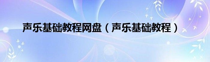 声乐基础教程网盘(声乐基础教程)