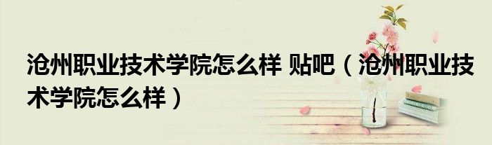 沧州职业技术学院怎么样 贴吧(沧州职业技术学院怎么样)