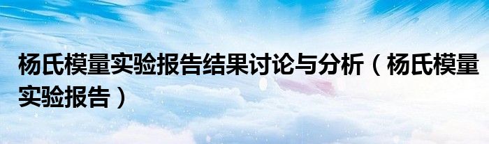 关于杨氏模量实验报告结果讨论与分析,杨氏模量实验报告这个很多人还不知道,今天菲菲来为大家解答以上的问题,现在让我们一起来看看吧!