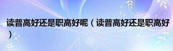 关于读普高好还是职高好呢,读普高好还是职高好这个很多人还不知道,今天菲菲来为大家解答以上的问题,现在让我们一起来看看吧!