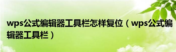 关于wps公式编辑器工具栏怎样复位,wps公式编辑器工具栏这个很多人还不知道,今天菲菲来为大家解答以上的问题,现在让我们一起来看看吧!