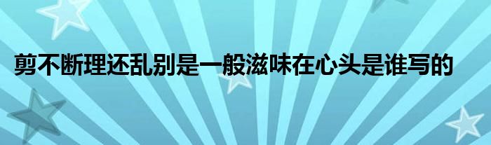 关于剪不断理还乱别是一般滋味在心头是谁写的这个很多人还不知道,今天菲菲来为大家解答以上的问题,现在让我们一起来看看吧!