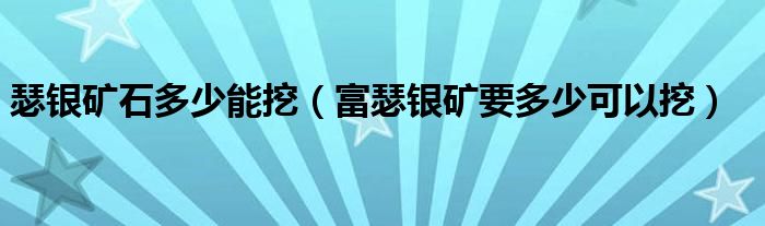 关于瑟银矿石多少能挖,富瑟银矿要多少可以挖这个很多人还不知道,今天菲菲来为大家解答以上的问题,现在让我们一起来看看吧!