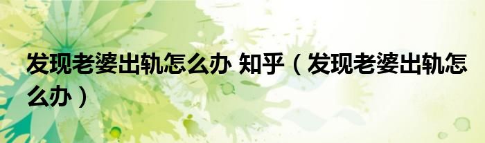 发现老婆出轨怎么办 知乎(发现老婆出轨怎么办)