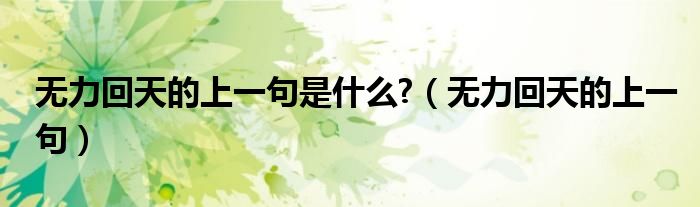 大家好,小晋来为大家解答以下问题,关于无力回天的上一句是什么?,无力回天的上一句很多人还不知道,今天让我们一起来看看吧!