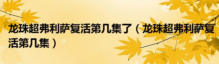 大家好,小晋来为大家解答以下问题,关于龙珠超弗利萨复活第几集了,龙珠超弗利萨复活第几集很多人还不知道,今天让我们一起来看看吧!