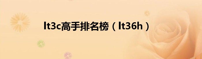 大家好,雨雨来为大家解答以上问题,lt3c高手排名榜,lt36h很多人还不知道,现在让我们一起来看看吧!