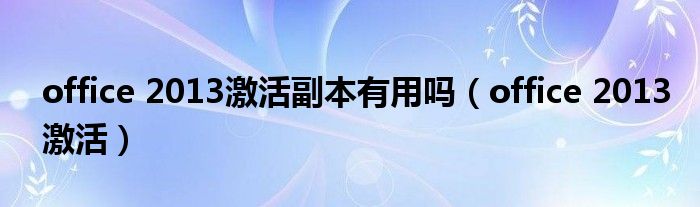 大家好,小飞来为大家解答以上问题,office 2013激活副本有用吗,office 2013激活很多人还不知道,现在让我们一起来看看吧!