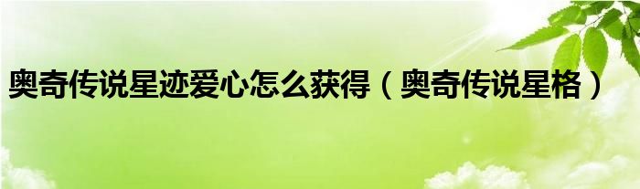 奥奇传说星迹爱心怎么获得,奥奇传说星格很多人还不知道,乐乐来为大家解答以上问题,现在让我们一起来看看吧!