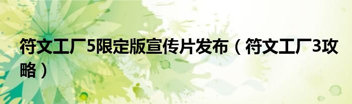 符文工厂5限定版宣传片发布,符文工厂3攻略很多人还不知道,乐乐来为大家解答以上问题,现在让我们一起来看看吧!