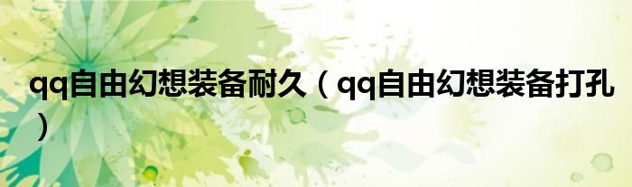 qq自由幻想装备耐久,qq自由幻想装备打孔这个很多人还不知道,小飞来为大家解答以上的问题。现在让我们一起来看看吧!