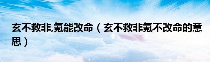 玄不救非,氪能改命(玄不救非氪不改命的意思)