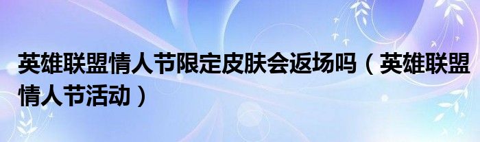 大家好,小飞来为大家解答以上的问题。英雄联盟情人节限定皮肤会返场吗,英雄联盟情人节活动这个很多人还不知道,现在让我们一起来看看吧!