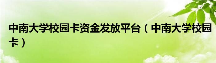 大家好,小飞来为大家解答以上的问题。中南大学校园卡资金发放平台,中南大学校园卡这个很多人还不知道,现在让我们一起来看看吧!