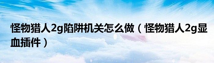 大家好,小飞来为大家解答以上的问题。怪物猎人2g陷阱机关怎么做,怪物猎人2g显血插件这个很多人还不知道,现在让我们一起来看看吧!