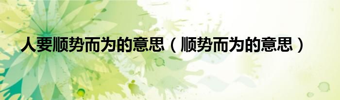 人要顺势而为的意思(顺势而为的意思)