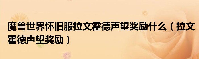 魔兽世界怀旧服拉文霍德声望奖励什么(拉文霍德声望奖励)