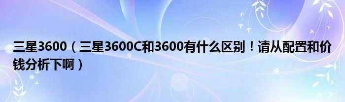大家好,小常来为大家解答以上问题。三星3600,三星3600C和3600有什么区别!请从配置和价钱分析下啊很多人还不知道,现在让我们一起来看看吧!