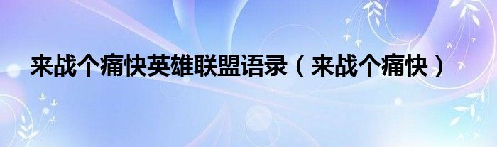 大家好,雨雨来为大家解答以上问题,来战个痛快英雄联盟语录,来战个痛快很多人还不知道,现在让我们一起来看看吧!