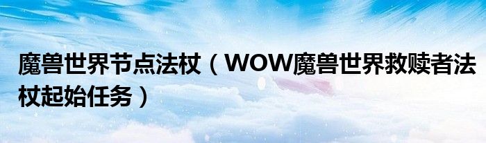 关于魔兽世界节点法杖,WOW魔兽世界救赎者法杖起始任务这个很多人还不知道,今天菲菲来为大家解答以上的问题,现在让我们一起来看看吧!