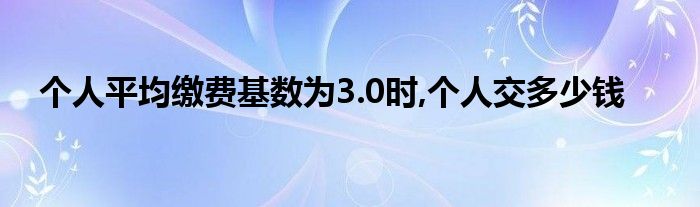 关于个人平均缴费基数为3.0时,个人交多少钱这个很多人还不知道,今天菲菲来为大家解答以上的问题,现在让我们一起来看看吧!