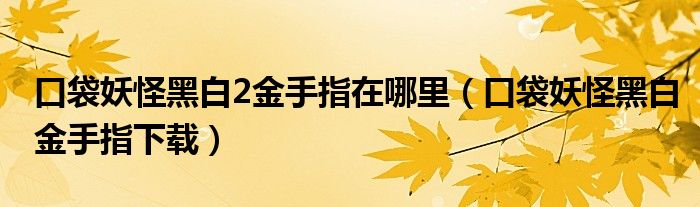 大家好,雨雨来为大家解答以上问题,口袋妖怪黑白2金手指在哪里,口袋妖怪黑白金手指下载很多人还不知道,现在让我们一起来看看吧!