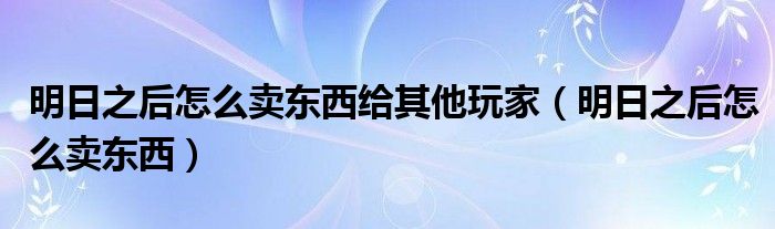 大家好,小晋来为大家解答以下问题,关于明日之后怎么卖东西给其他玩家,明日之后怎么卖东西很多人还不知道,今天让我们一起来看看吧!
