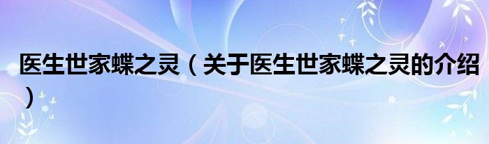 大家好,今天小乐来为大家解答以上的问题。医生世家蝶之灵,关于医生世家蝶之灵的介绍很多人还不知道,现在让我们一起来看看吧!
