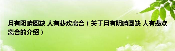 月有阴晴圆缺 人有悲欢离合(关于月有阴晴圆缺 人有悲欢离合的介绍)