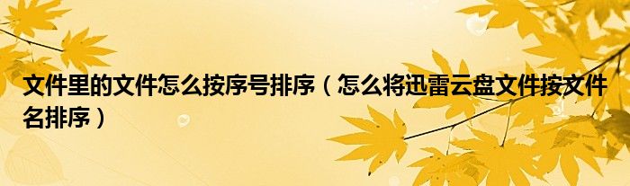大家好,今天小悦来为大家解答以上问题。文件里的文件怎么按序号排序,怎么将迅雷云盘文件按文件名排序很多人还不知道,现在让我们一起来看看吧!