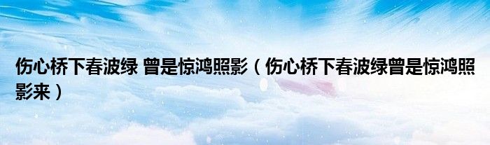 关于伤心桥下春波绿 曾是惊鸿照影,伤心桥下春波绿曾是惊鸿照影来这个很多人还不知道,今天菲菲来为大家解答以上的问题,现在让我们一起来看看吧!
