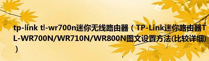 大家好,今天小悦来为大家解答以上问题。tp-link tl-wr700n迷你无线路由器,TP-Link迷你路由器TL-WR700N/WR710N/WR800N图文设置方法(比较详细)很多人还不知道,现在让我们一起来看看吧!