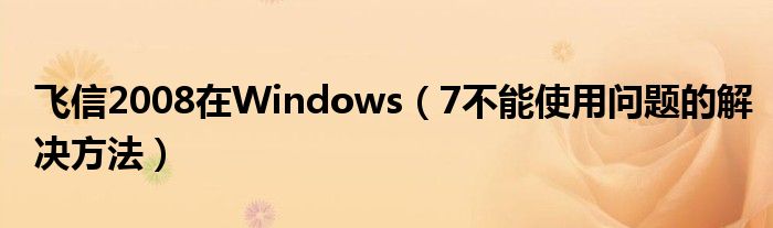 大家好,今天小悦来为大家解答以上问题。飞信2008在Windows,7不能使用问题的解决方法很多人还不知道,现在让我们一起来看看吧!