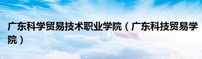 广东科学贸易技术职业学院(广东科技贸易学院)