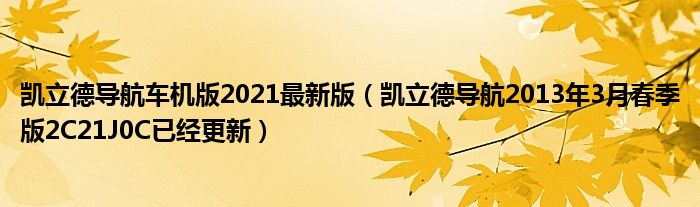 大家好,今天小悦来为大家解答以上问题。凯立德导航车机版2021最新版,凯立德导航2013年3月春季版2C21J0C已经更新很多人还不知道,现在让我们一起来看看吧!
