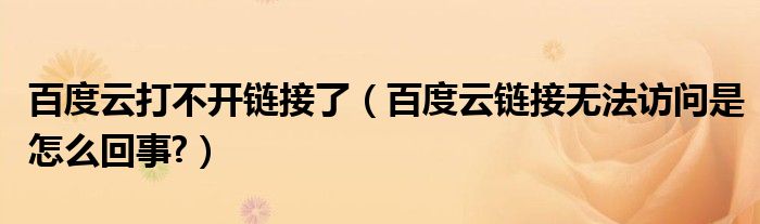 大家好,今天小悦来为大家解答以上问题。百度云打不开链接了,百度云链接无法访问是怎么回事?很多人还不知道,现在让我们一起来看看吧!