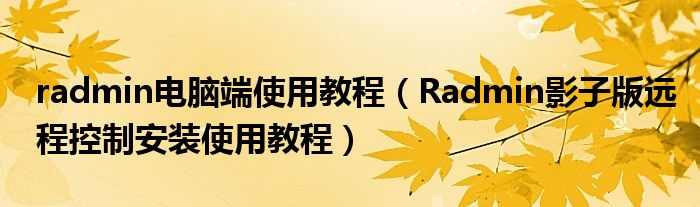 大家好,今天小悦来为大家解答以上问题。radmin电脑端使用教程,Radmin影子版远程控制安装使用教程很多人还不知道,现在让我们一起来看看吧!