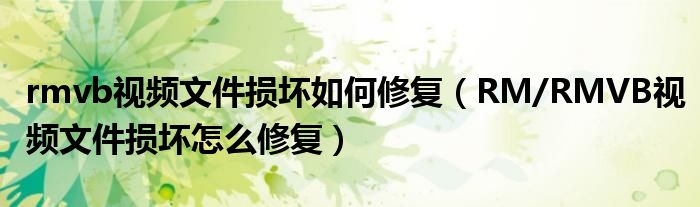 大家好,今天小悦来为大家解答以上问题。rmvb视频文件损坏如何修复,RM/RMVB视频文件损坏怎么修复很多人还不知道,现在让我们一起来看看吧!