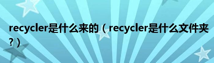 大家好,今天小悦来为大家解答以上问题。recycler是什么来的,recycler是什么文件夹?很多人还不知道,现在让我们一起来看看吧!