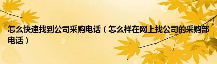 关于怎么快速找到公司采购电话,怎么样在网上找公司的采购部电话这个很多人还不知道,今天菲菲来为大家解答以上的问题,现在让我们一起来看看吧!
