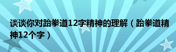 关于谈谈你对跆拳道12字精神的理解,跆拳道精神12个字这个很多人还不知道,今天菲菲来为大家解答以上的问题,现在让我们一起来看看吧!